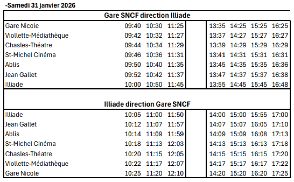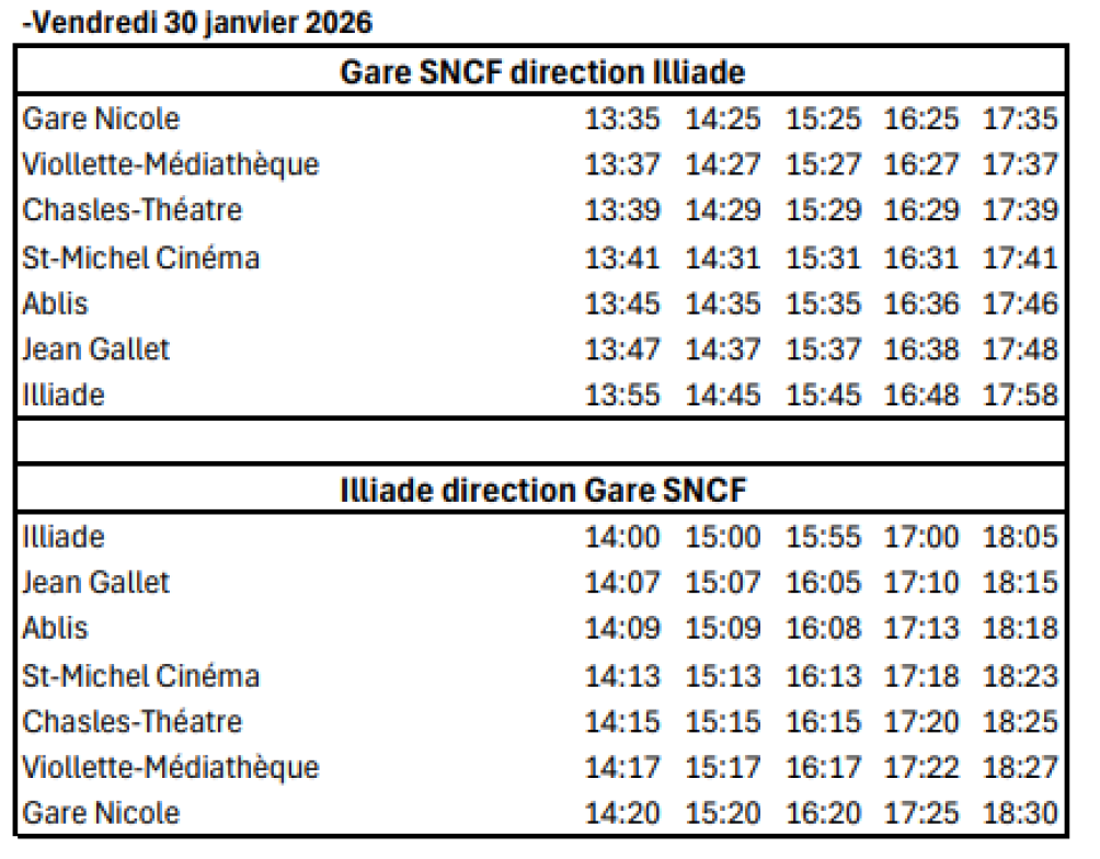 Système de navettes depuis le pôle d'échange multimodal jusqu'à l'Illiade.